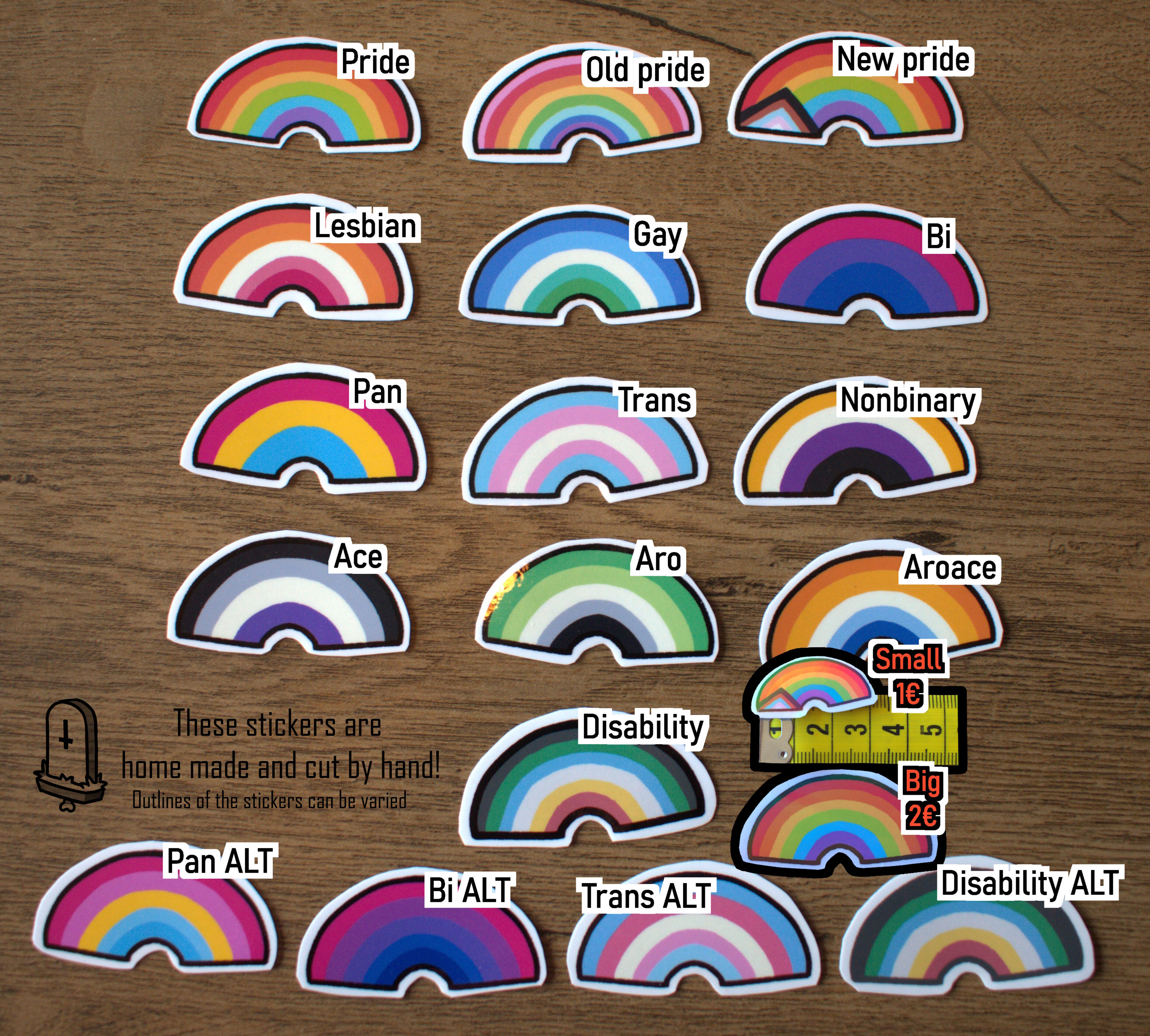 Pride rainbows - Small (Sparkles, glossy or rainbow glossy) 1€ / Big (Rainbow glossy or glossy) 2€